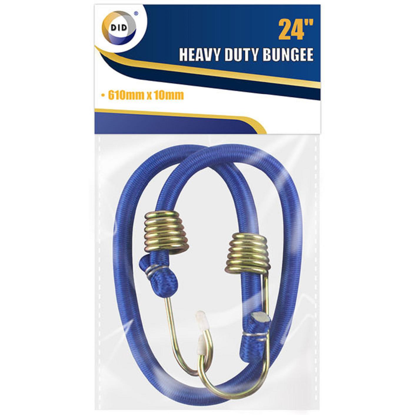 Bagagespin/snelbinder in de kleur blauw. De snelbinder heeft, inclusief haken, een totale lengte van circa 61 cm. Handig voor bijvoorbeeld het bevestigen van bagage achter op de fiets, motor of aanhanger. De haken zijn gemaakt van metaal, de binder is gemaakt van elastiek. Lengte: circa 61 cm. Diameter: circa 1 cm.