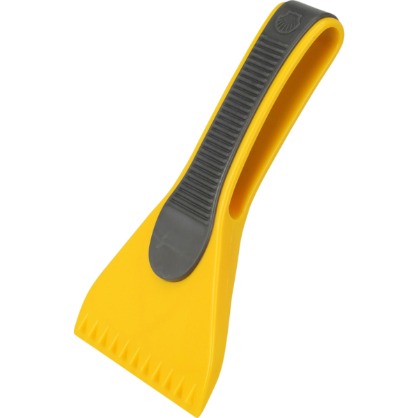 Functionele ijskrabber met rubberen trekker om uw auto/raam ijs en sneeuw vrij te maken. Kleur: Rood. Formaat: L18 cm x B12 cm x H3 cm. Materiaal: Kunststof. Autoruiten krabber.